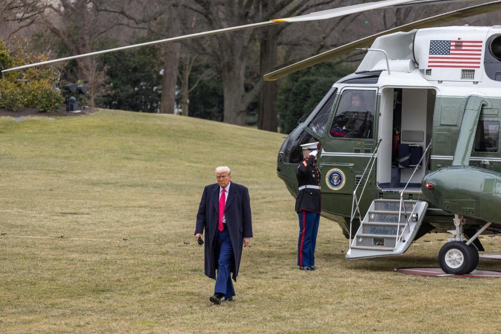 tttttttttttt2月22日,美国总统特朗普乘直升机返回华盛顿白宫。新华社记者胡友松摄tttttt